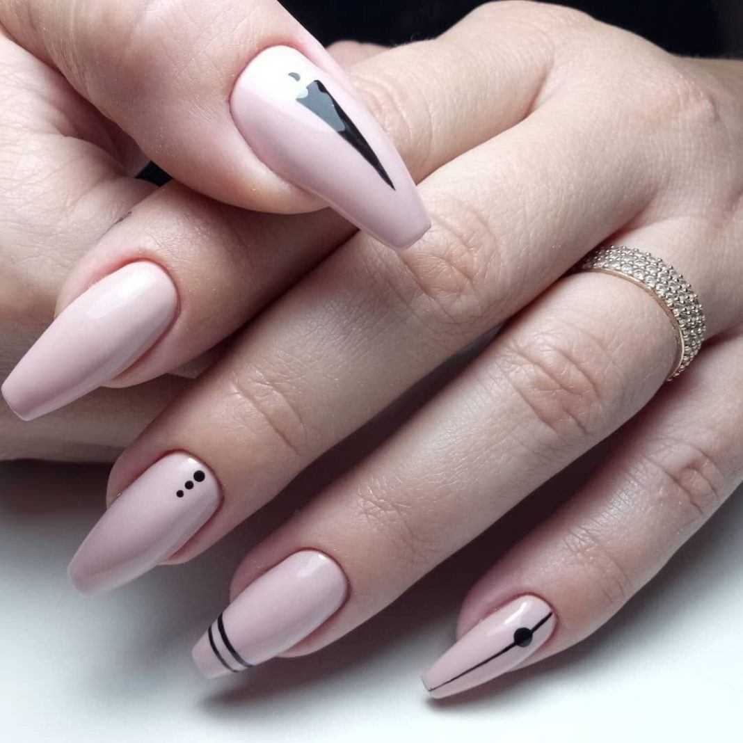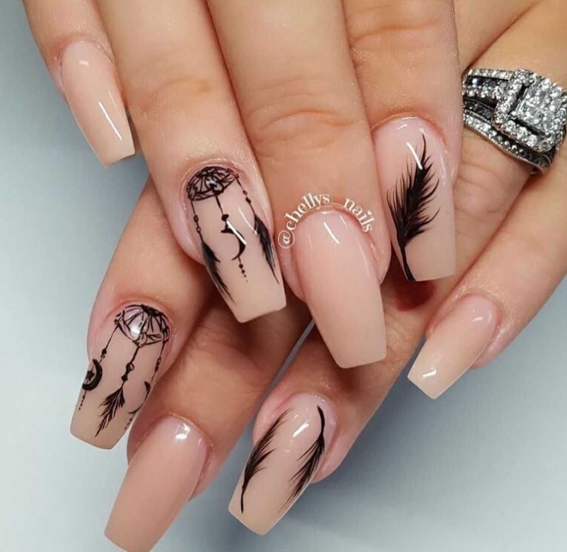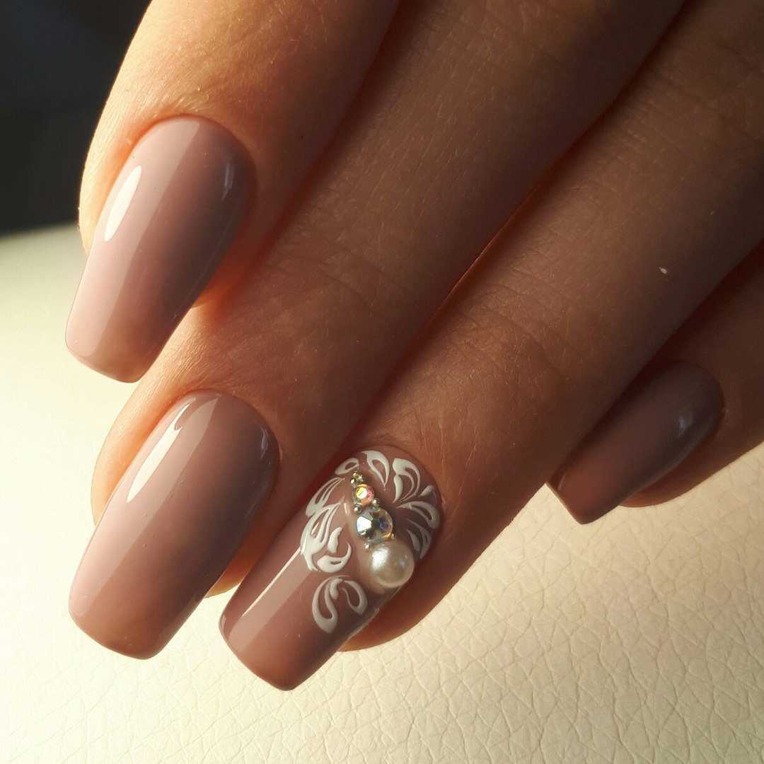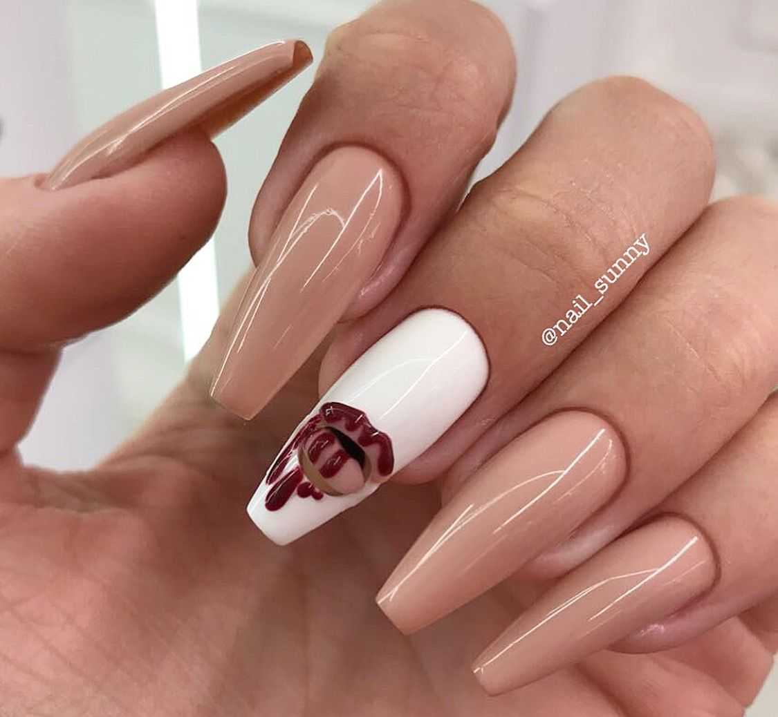 Нюдовые оттенки очень красиво смотрятся на длинных ногтях, особенно, если добавить еще интересный дизайн