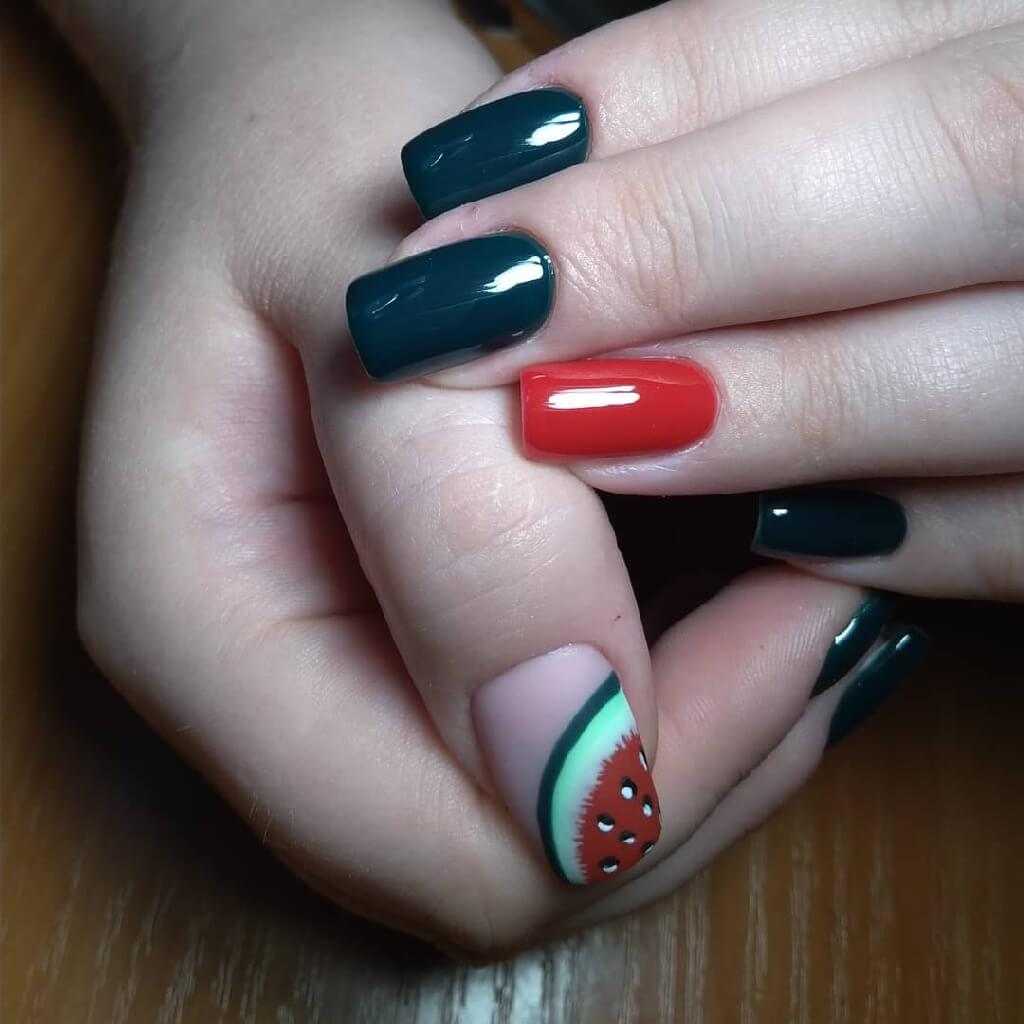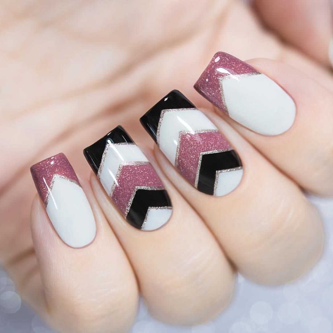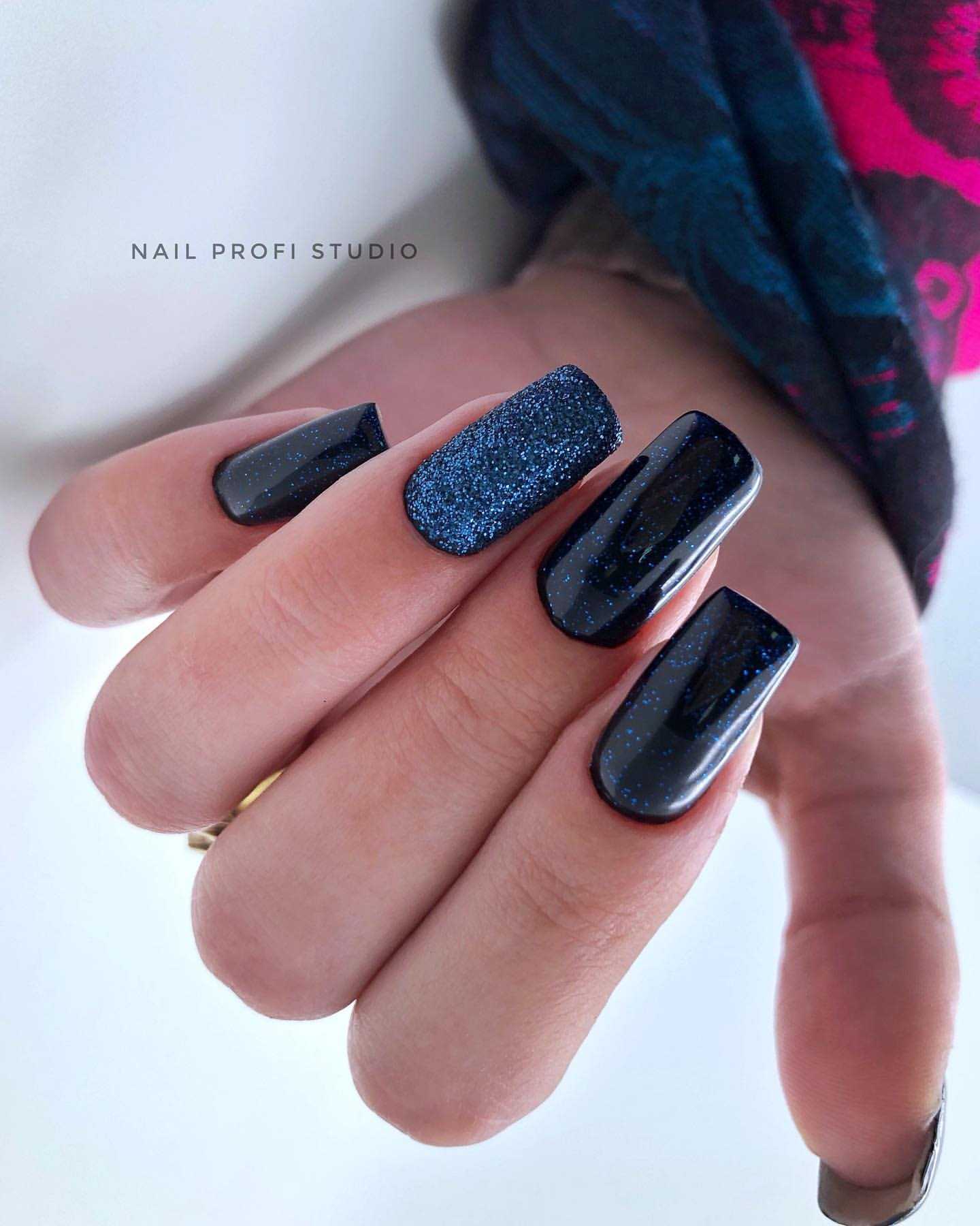 Что касается темных оттенков, то тут стоит быть осторожнее. Не рекомендуется покрывать однотонным черным гель-лаком длинные ногти стилеты, квадратные ногти. Если вы все же решили использовать темный оттенок в качестве основного, то дополняйте его геометрическим декором, серебряным глиттером, слайдерами.