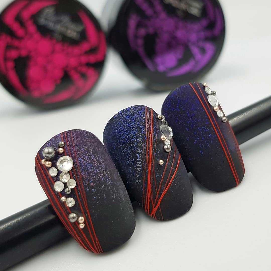 Маникюр с паутиной и пауком можно сделать самостоятельно. Фантазия поможет создать красивый дизайн. Много идей представлено в интернете.