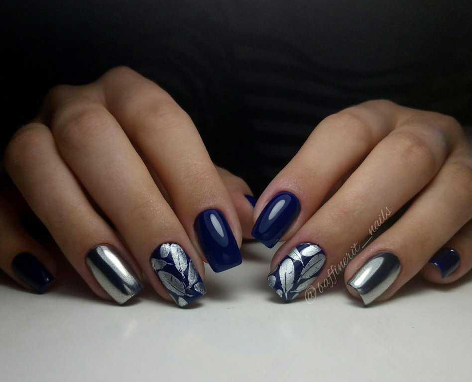 Серебро популярно не только в зимний период, но и в осенний. Благодаря такому покрытию можно с легкостью создать праздничный маникюр. Серебро превосходно сочетается с разными цветами, в особенности с черным.