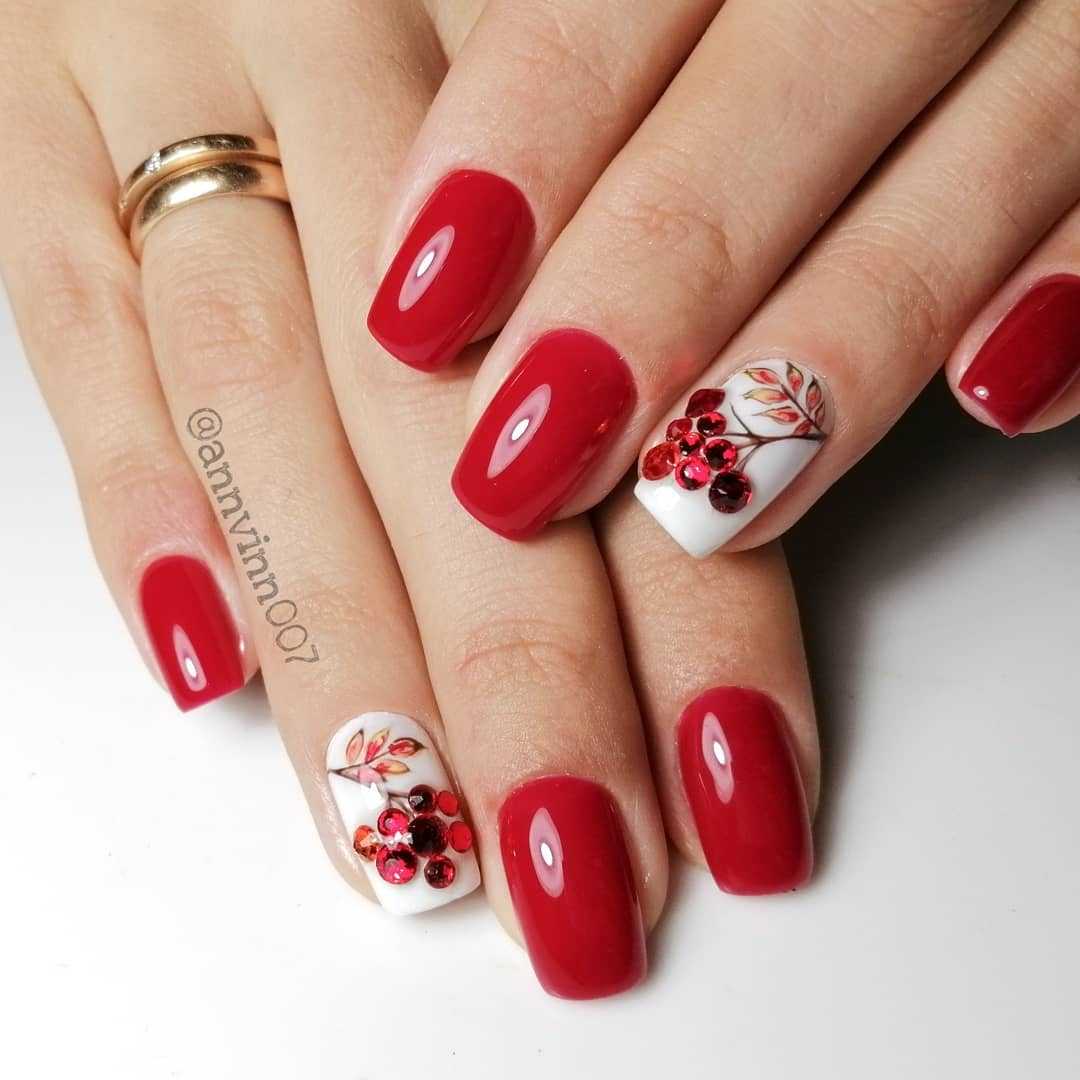 Сделать маникюр с рябиной благодаря стразам сможет даже начинающий nail мастер.