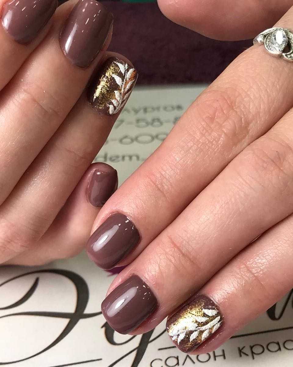 Осенний маникюр на короткие ноготки должен отличатся теплом и спокойствием, что хорошо выражается в маникюре глинтвейн и кофейный. Это два потрясающих цвета, каждый из которых занимает не последнюю строчку в популярности. Кофейный однозначно хорошо подойдет под любую форму коротких ногтей, поможет сделать их визуально больше, чем есть на самом деле. Кофейный как никакой другой цвет подчеркивает изысканность маникюра и предлагается на выбор в разных оттенках.