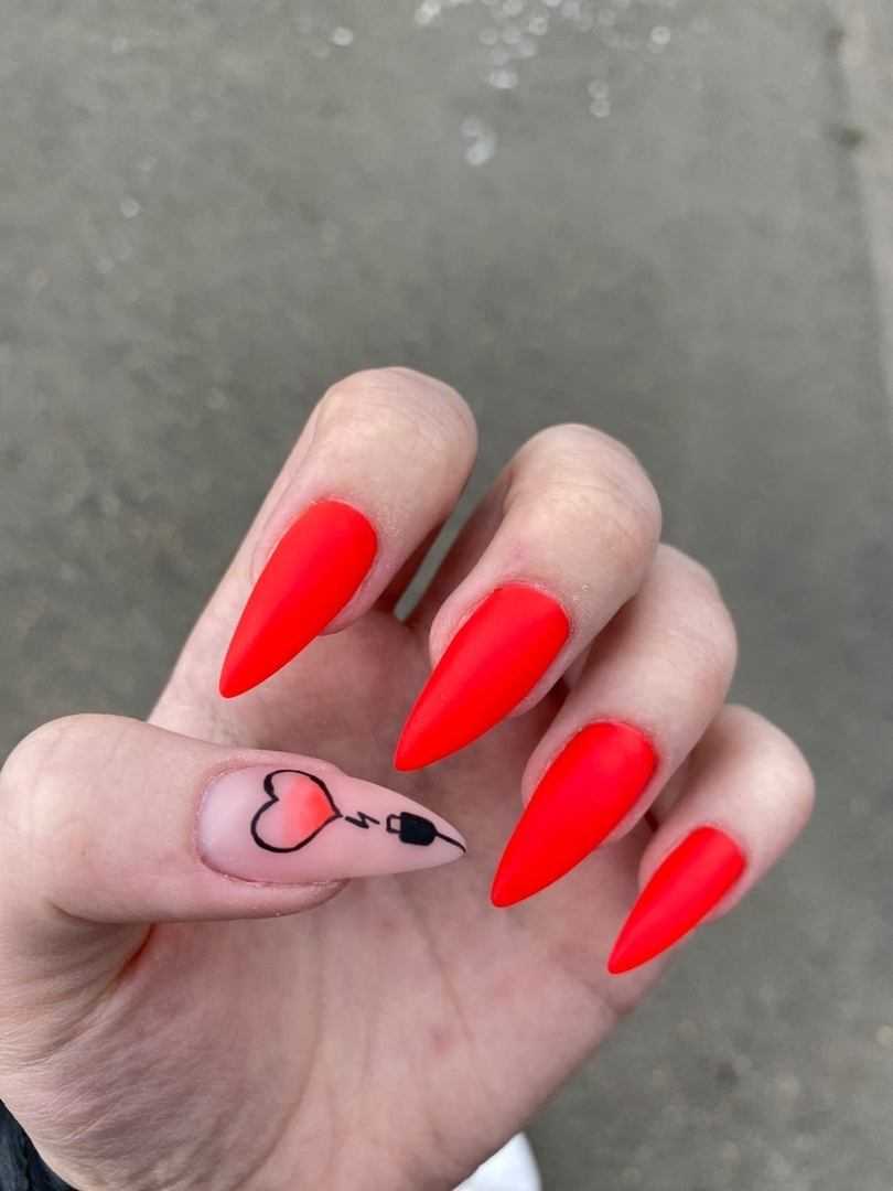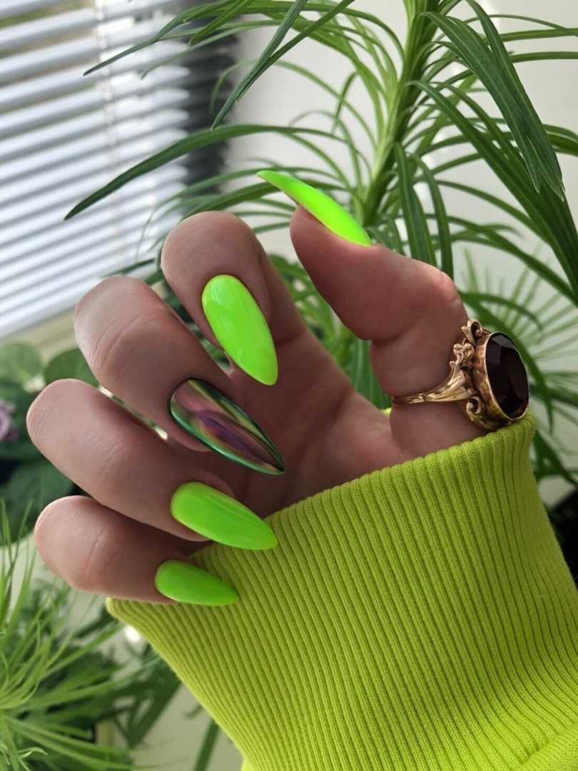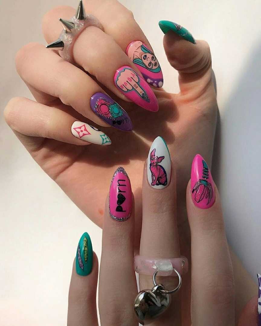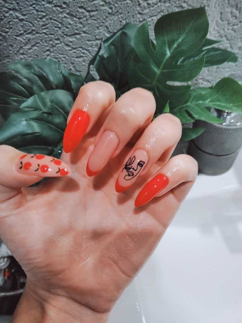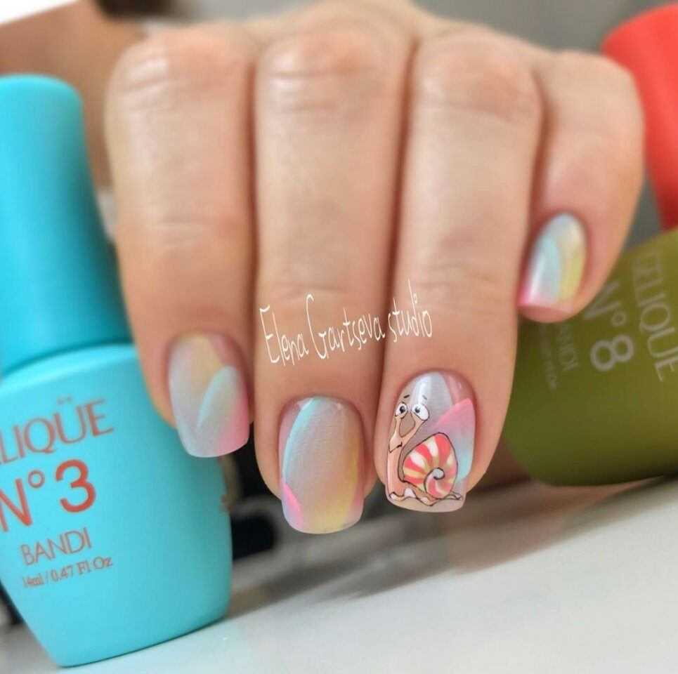 Такой дизайн вызывает удивление и особое внимание окружающих. Также очень красиво выглядит акцент принта на нескольких ноготках