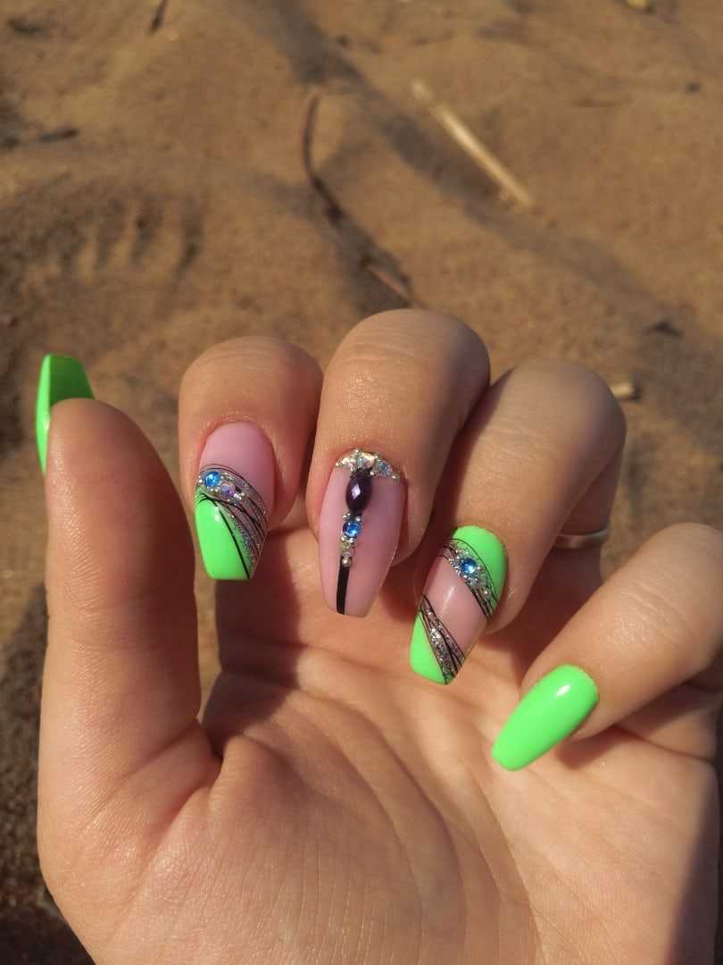 рожнее с линиями в нейл-арте. Если вы сделаете горизонтальные полосы, то ваш маникюр обречен на неудачу. Подобные линии делают ногтевую пластину зрительно еще короче. Лучше отдать предпочтение вертикальным вариантам. Не стоит применять и объемные элементы: лепнину, узоры гелевыми или акриловыми красками, все это также будет лишь укорачивать ногтевую пластину.