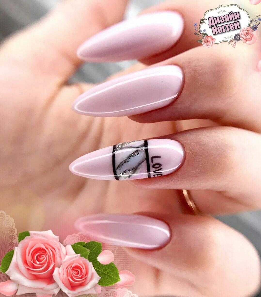 Стильные слоганы, фразы и надписи прекрасно смотрятся в дизайне летнего маникюра шеллаком 2020. Чаще всего нейл-арт выполняется при использовании слайдеров. Касаемо содержания надписи, то это может быть любое слово, поговорка или модное выражение. Удобнее всего располагать надпись на ноготках квадратной или миндалевидной формы. В качестве основы смело выбирайте любой тон. Чтоб сделать красивый акцент, выполните несколько ноготков контрастным тоном, на котором разместятся надписи.
