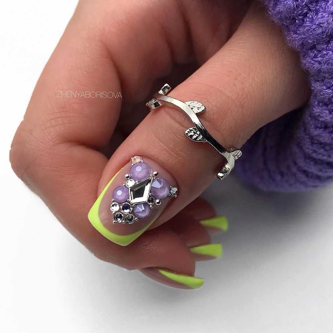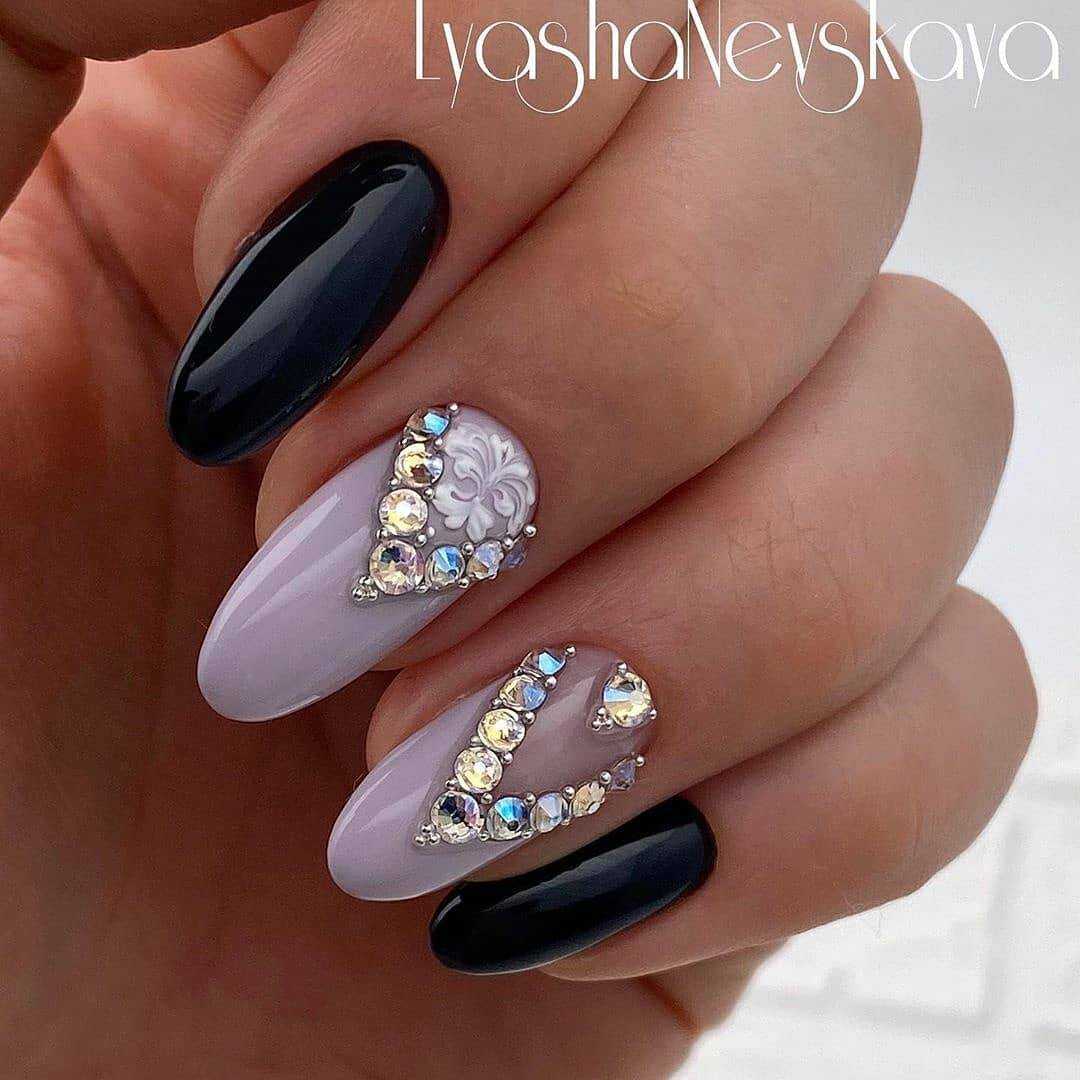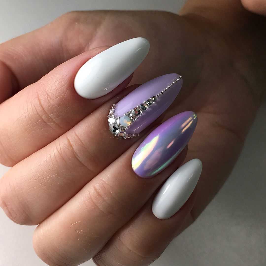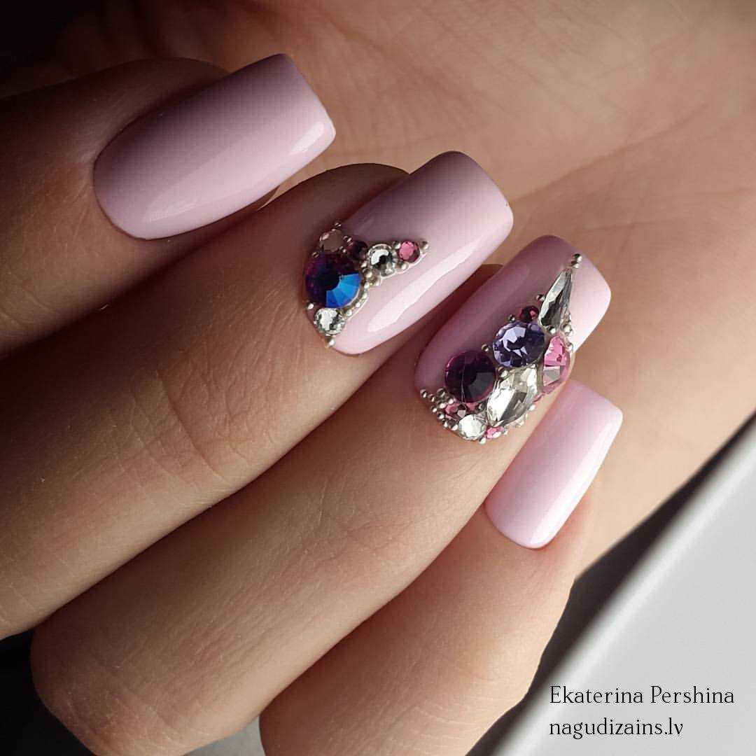 #6 Маникюр шеллак с втиркой, блестками, стразами: весна 2020