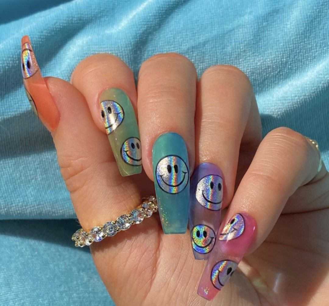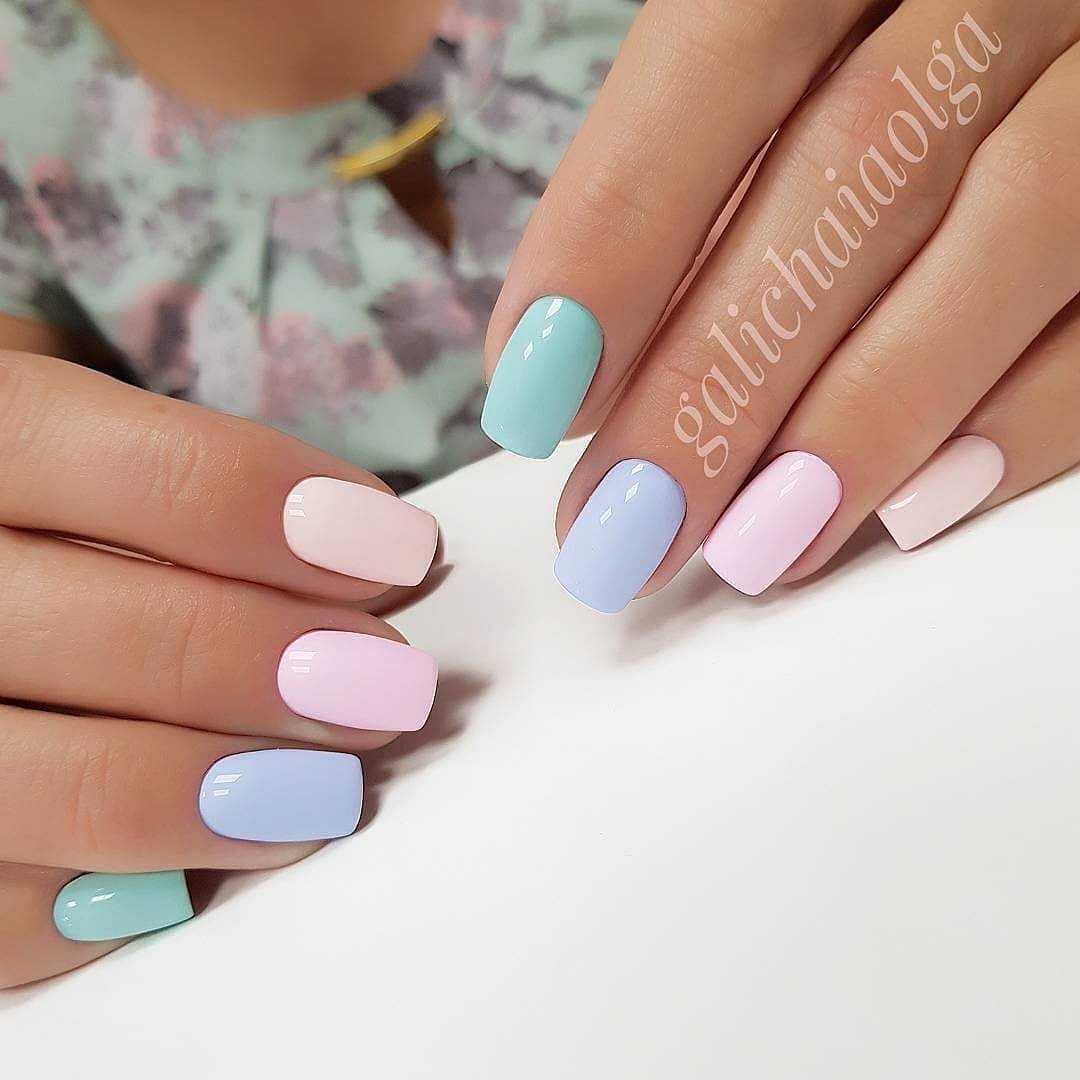 Разноцветный маникюр очень помогает в составлении образа, ведь наличие нескольких цветов позволяет создавать большее количество комбинаций. Он также привлекательно смотрится на фоне одежды нейтральных однотонных цветов.