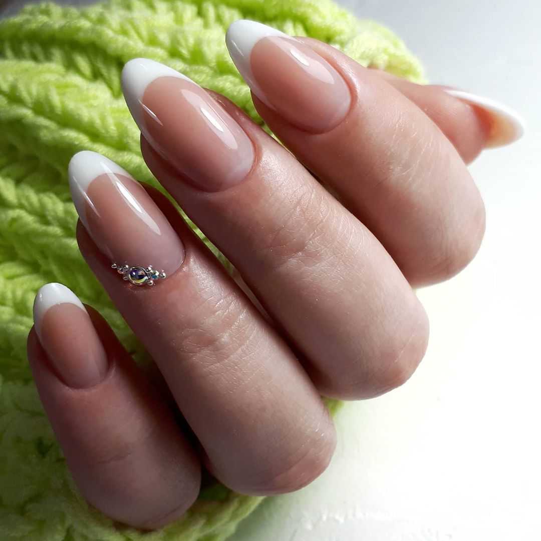 Французский маникюр отличается своей лёгкостью и женственностью: он не выходит из моды, оставаясь актуальным всегда, а также подходит под самые разные образы и события. Рекомендуем вам сделать такой актуальный в последнее время лунный маникюр. Вы можете выделить его контрастным с базой цветом или подчеркнуть место около основания ногтя выложив на нём стразы в форме перевёрнутой улыбки. С формами классического френча также активно экспериментируют в последнее время: полоски могут быть и тонкими, и толстыми, и выполненными на стандартной полукруглой форме ногтей, и на модных стилетах. Французский маникюр давно перестал быть скучным и официальным, поэтому вопрос его преображения зависит только от вас, профессионализма мастера, выполняющего маникюр и вашей фантазии.