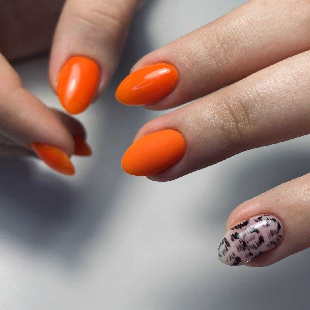 Тонкая изящная «улыбка» французского покрытия и узкий оранжевый пояс любой образ сделают интересным и особенным.