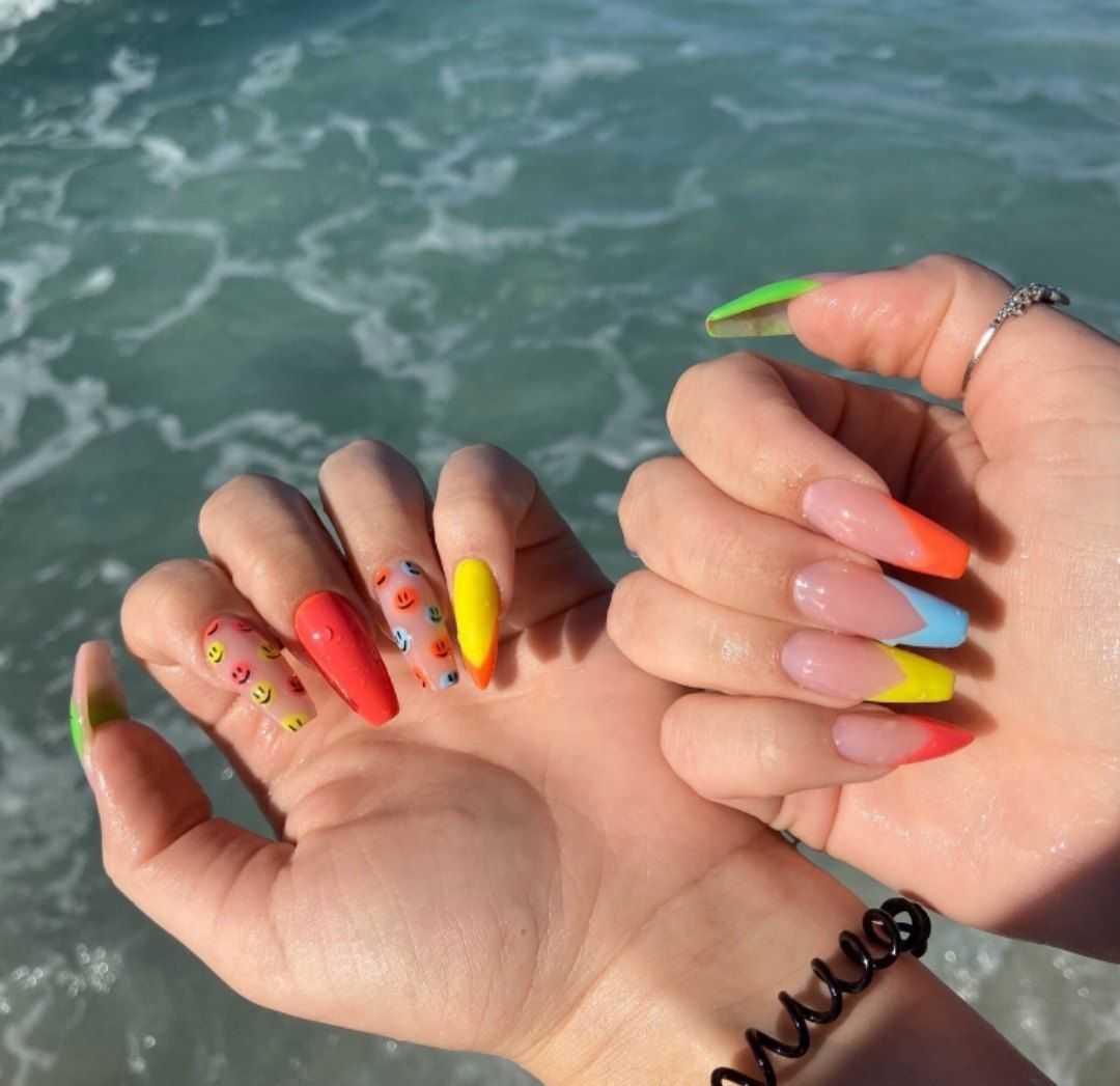 Классический френч актуален до сих пор. В летнем сезоне 2020 уместно не только стандартное оформление, но и более оригинальные решения. Среди них яркая палитра оттенков а также разнообразие видов линии улыбки. Отлично смотрится френч в цветном исполнении, который лучше всего подходит модницам. Ведь они больше всего любят необычные образы и смелые решения. Что касается линии улыбки, то она может быть треугольная, квадратная или абстрактная
