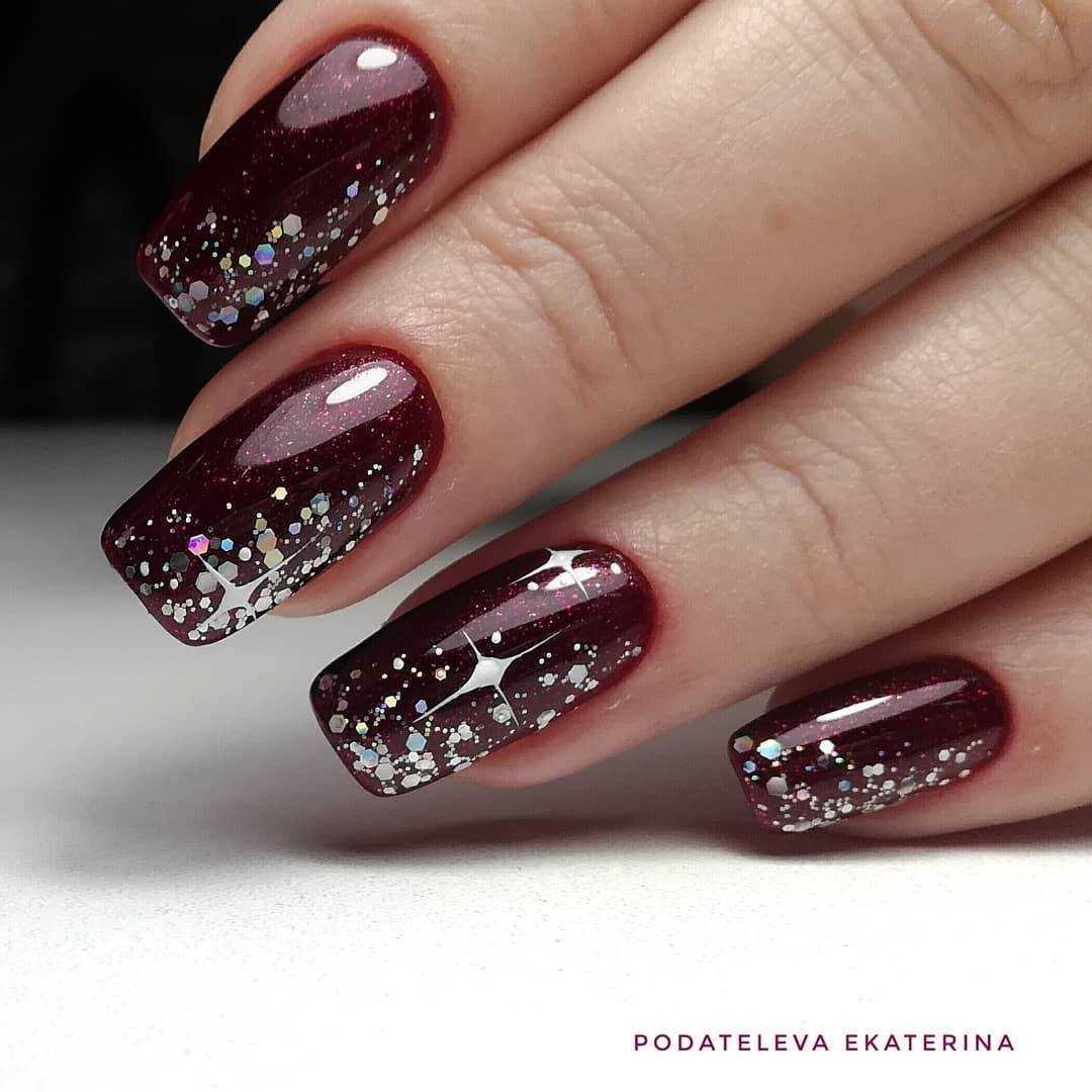 Блестящий декор в новом сезоне не потеряет своей актуальности. Используйте любой материал, который предлагает современная нейл-индустрия. Это могут быть стразы, блестки, мелкая втирка, фольга и т.д.