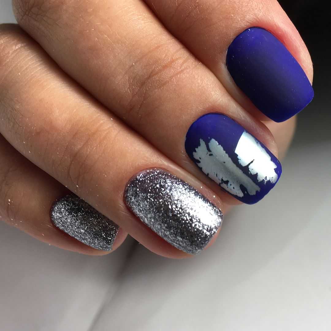 Это все грани одного цвета, который может быть совершенно разным. И сочетание синего с другим цветами разнообразно. Модной тенденцией не только в 2019 году, а уже несколько сезонов подряд является синий маникюр в сочетании с серебристым декором. Комбинация синего и серебра достойное, благородное сочетание тонов. В таком варианте маникюр выглядит торжественно, ярко и стильно.