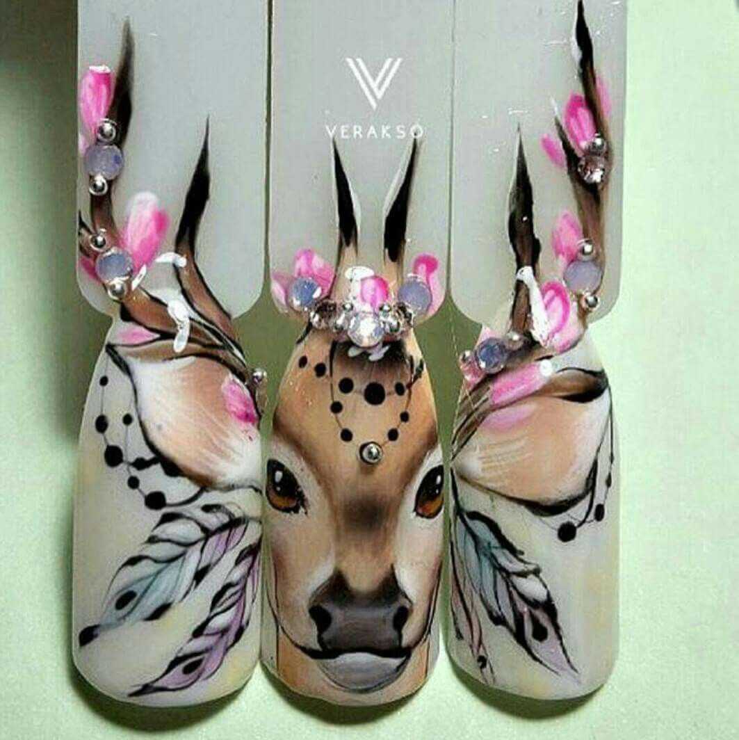 В новогоднюю ночь конечно же все будут под впечатлением, если вы на своих ногтях изобразите именно героев и символов Нового года, это могут быть: