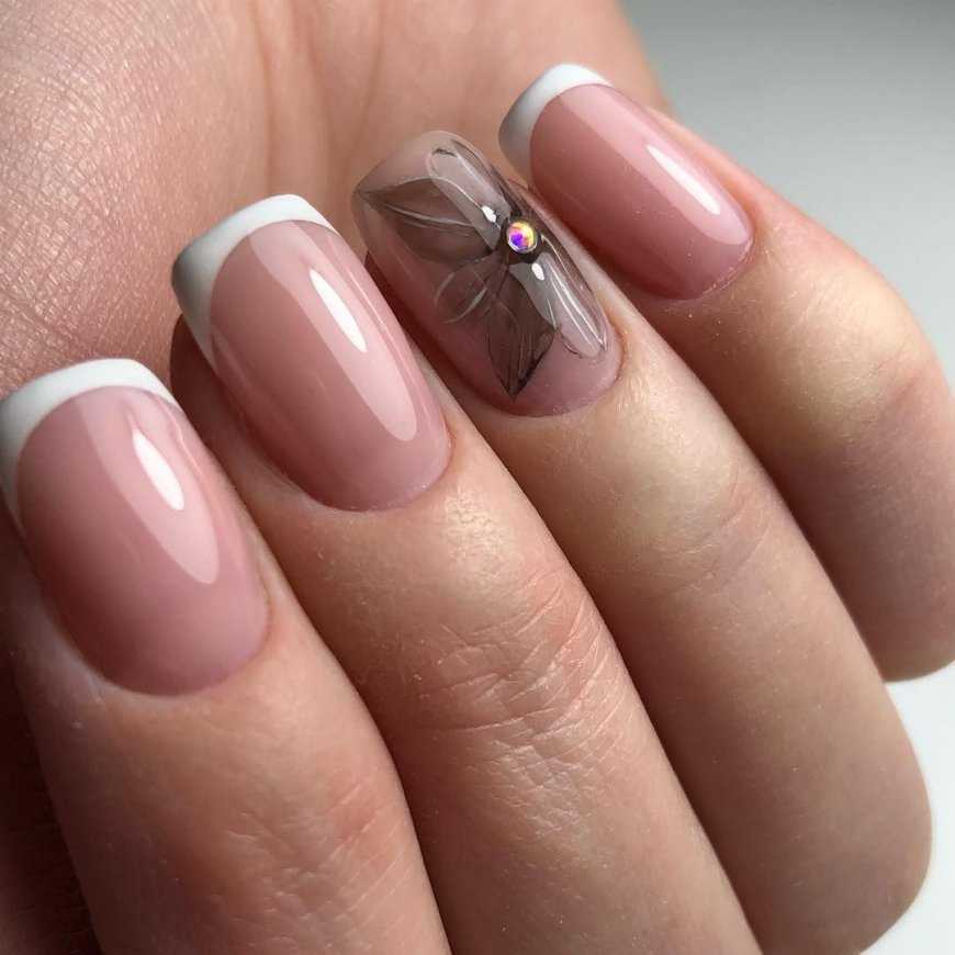 Самым популярным видом омбре является переход от нежного пастельного оттенка к белому цвету. Главное достоинство маникюра — незаметное отрастание. При этом совсем не обязательно останавливаться лишь на спокойных цветах. Вместо розового можно выбрать любой нежный цвет: бежевый, молочный или кофейный. Белый цвет можно заменить абсолютно любым другим понравившимся цветом. Маникюр выглядит очень нежно и естественно.