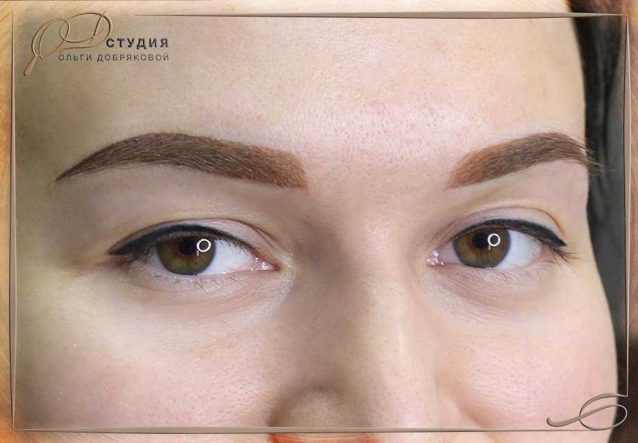 Как только перманентный макияж был выполнен, женщина заметит, что обработанная область покраснела и припухла. На бровях появится корочка. Они будут казаться более тёмного и яркого оттенка, чем этого бы хотелось.
