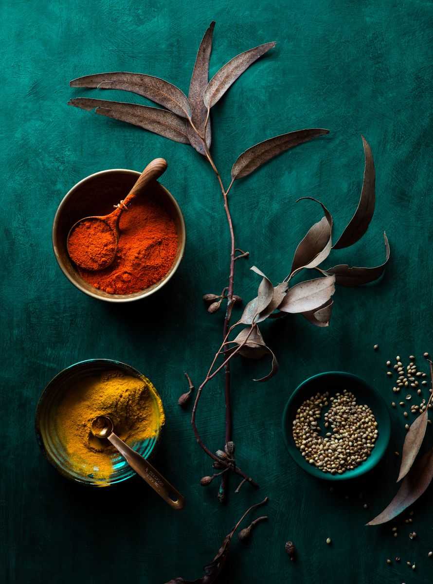 - Согревающие специи: имбирь, куркума, корица, гвоздика, острый перец, тмин, анис, розмарин