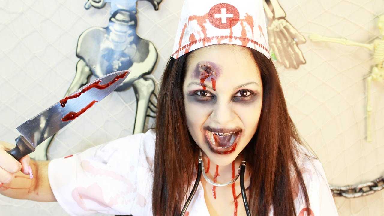 А для того чтобы сделать эффектный макияж для медсестры-зомби, придется постараться: