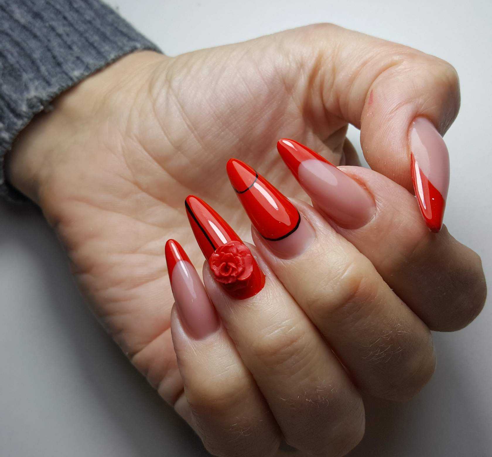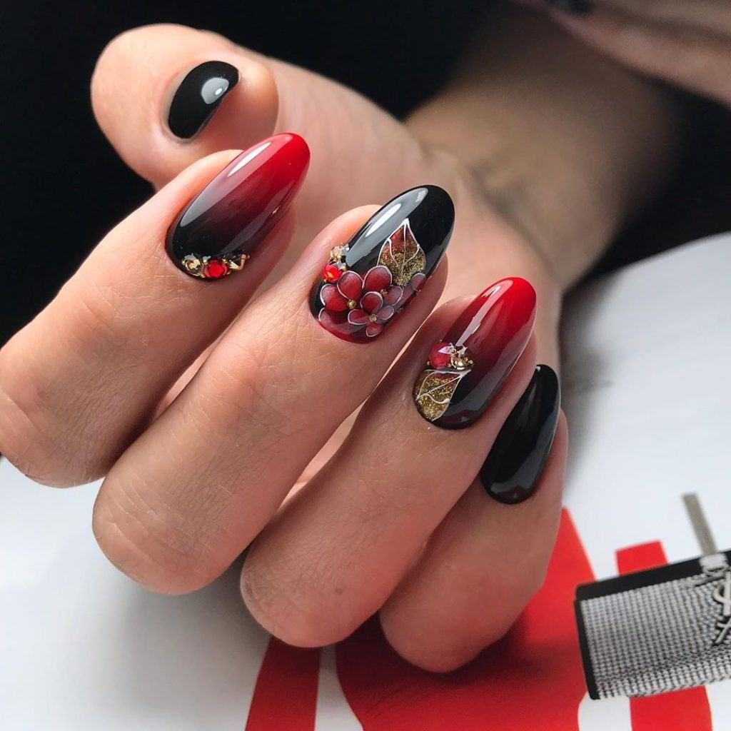 Плавный переход оттенков смотрится невероятно красиво практически в любом цветовом сочетании. Но чаще всего именно красный цвет используется в качестве основы нейл-арта
