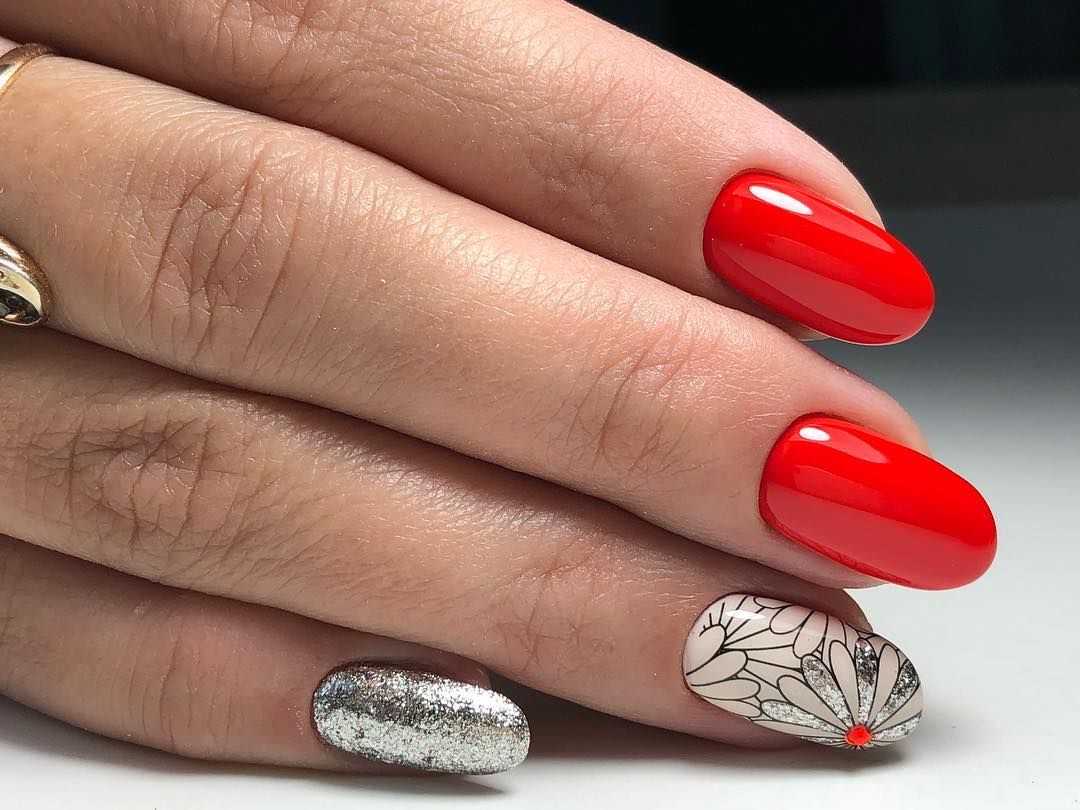 - Глубокий красный. Еще одним беспроигрышным решением будет дизайн в красных тонах. Особенно популярным считается оттенок марсала и коралл. Такие лаки прекрасно впишутся как в повседневные ансамбли, так и нарядные вечерние сочетания.