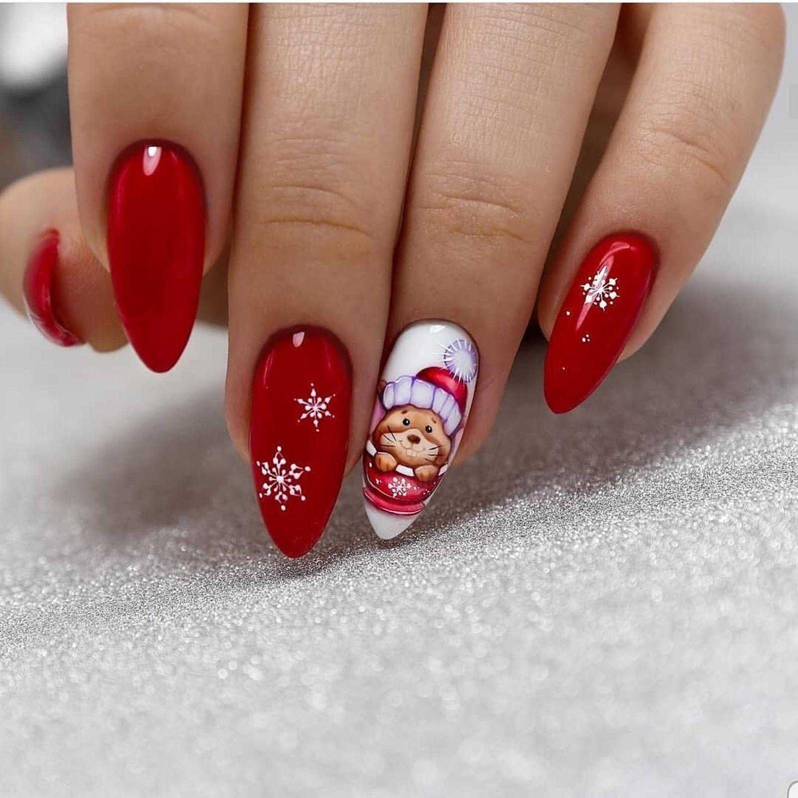 Красный цвет является идеальным решением для тематического дизайна ногтей. В зимнем сезоне многие выбирают различные узоры, снежинки, а также новогодних героев и прочие атрибуты праздника. Смотрится такое оформление всегда очень красиво и не остается без внимания. В качестве дополнения можно использовать цветные контрастные акценты, декоративные элементы и их композиции. Конечно же, в преддверии Нового года многие девушки делают подобное оформление. Но это вовсе не значит, что надо от него отказываться. Напротив, тематический маникюр поднимает праздничное настроение и дарит лишь положительные эмоции. Настоящие модницы и вовсе отмечают, что он делает каждый образ более уютным.