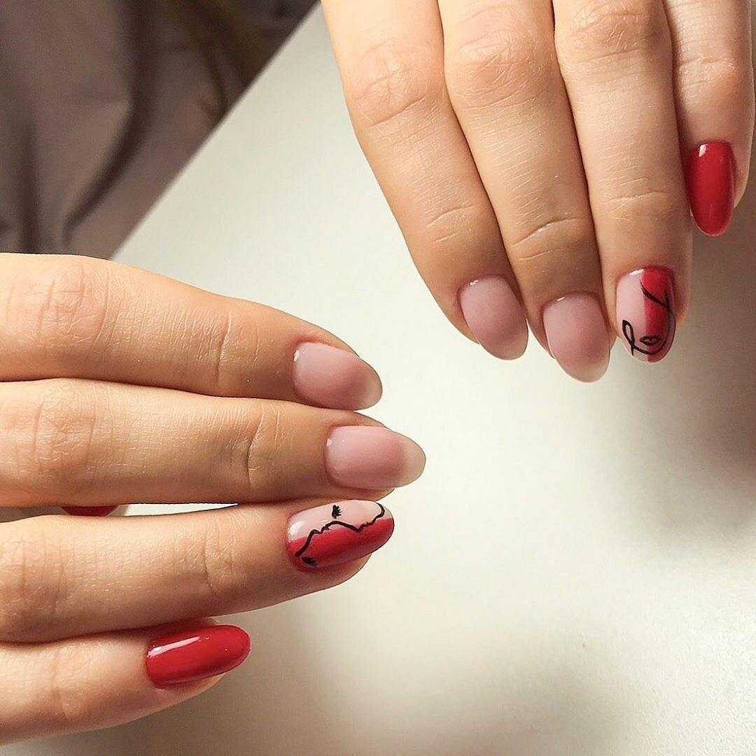 Популярность минимализма в современном нейл-арте сложно переоценить. Все чаще девушки выбирают лаконичный, не броский и стильный маникюр. Красный цвет в данном случае используют для его оформления в виде тонких полосок, точек или небольших геометрических фигур. Основным фоном может быть бежевый, серый или белый цвет. За счет такого контраста рисунок подчеркивается максимально выгодно.