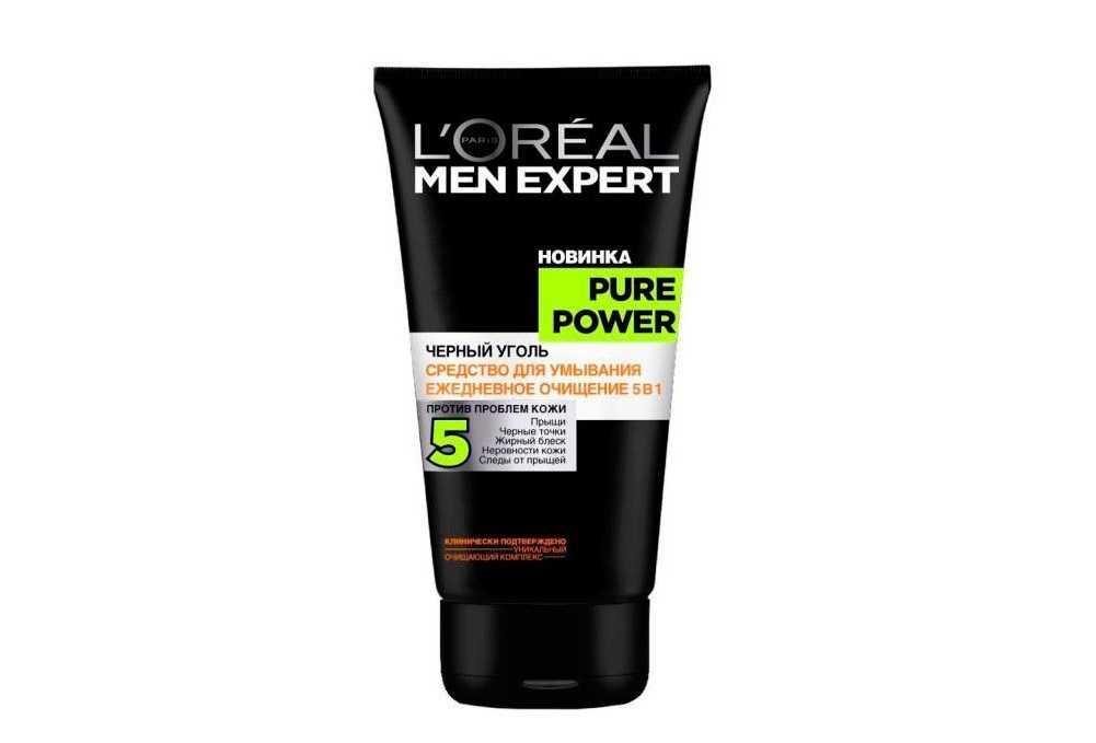 Умывалка для лица от прыщей для мужчин от топового бренда L’Oreal с черным углем. Обладает хорошим абсорбирующим эффектом. Бюджетное средство «5 в 1» пользуется популярностью и среди женщин.