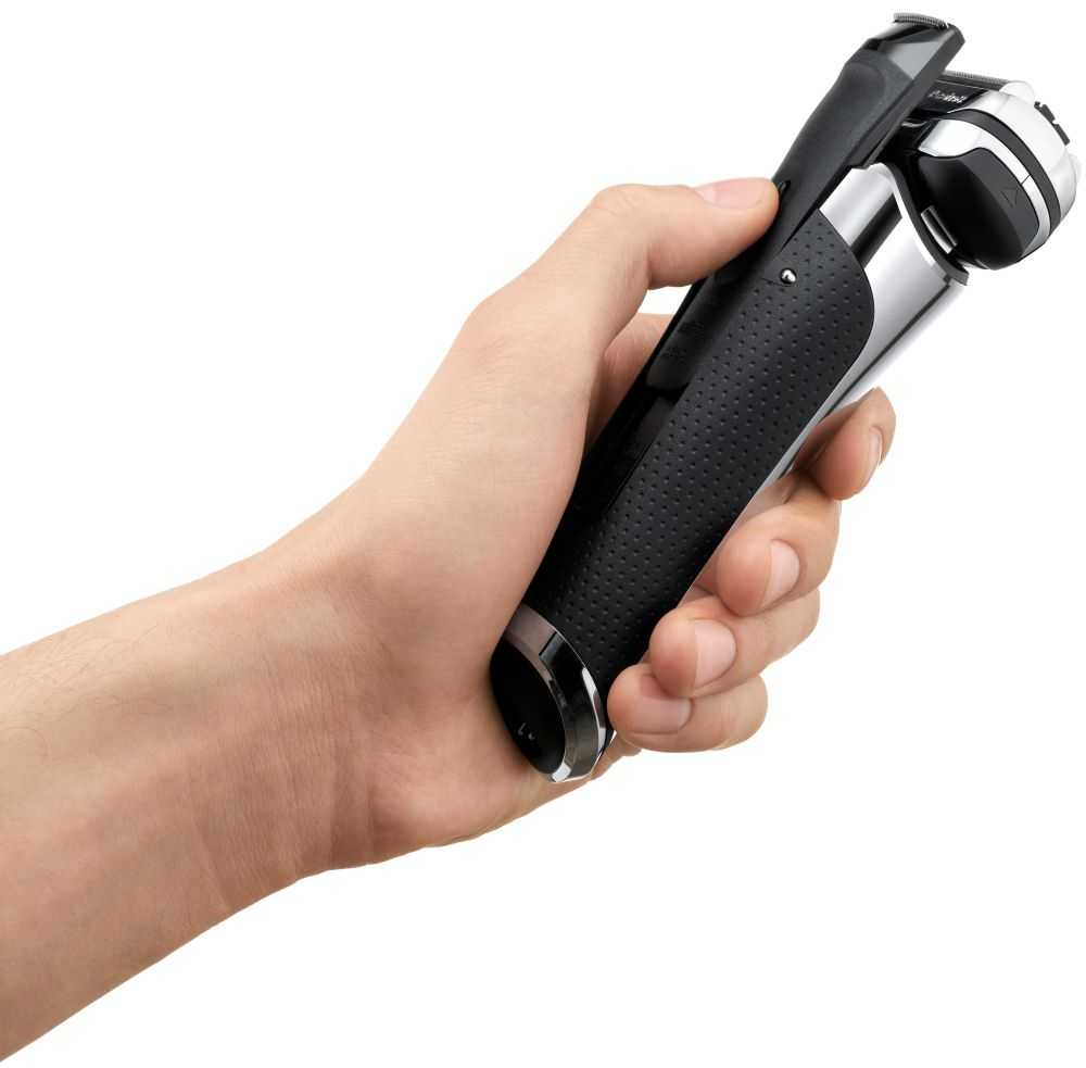 Отличное универсальное устройство от Braun может как брить, так и подстригать волосы. Да и работает оно и от батареи, и от электрической сети. Три чувствительных к малейшему давлению режущих элемента защищены специальной сеточкой. Это полностью устраняет риски раздражения. Но из-за того, что электробритва дублирует все контуры лица, она подравнивает как мелкую щетину, так и бреет в самых труднодоступных участках. Такой производительности способствует двойная система, разрешающая и влажное, и сухое бритье. При этом устройство полностью защищено, так как обладает плотным водонепроницаемым корпусом.